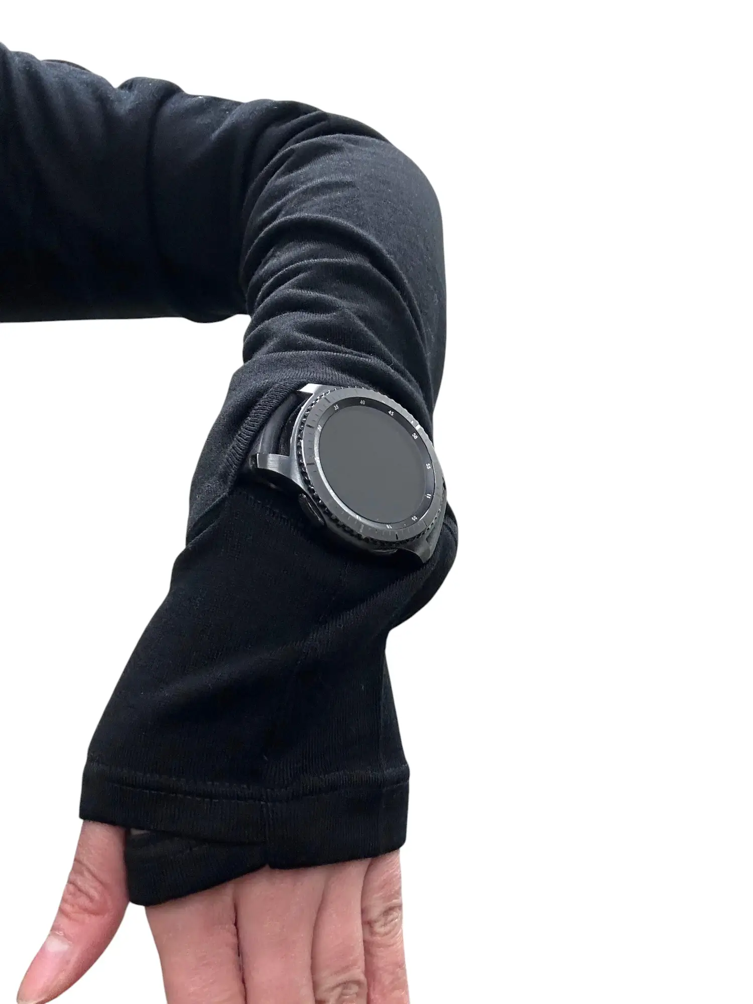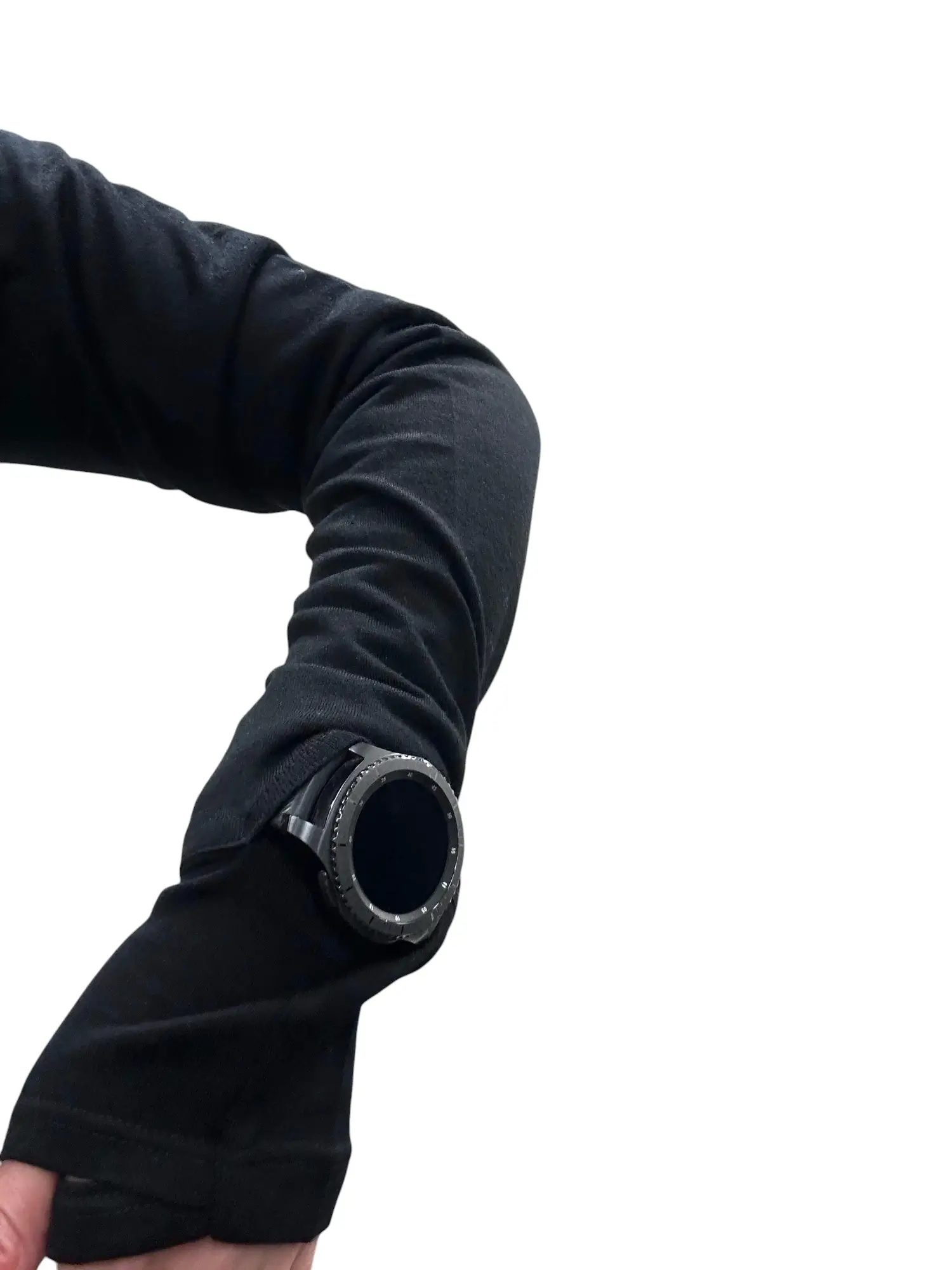 - Innovative left cuff includes a discreet watch window—check your smartwatch or fitness tracker during workouts without pulling up your sleeve. Seamlessly designed to stay sleek when not in use.